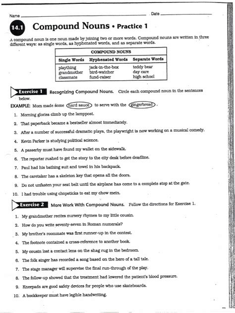 Online PDF Nouns Collective And Compound Nouns Practice 2 Prentice Hall Worksheet Answer Key Library Binding